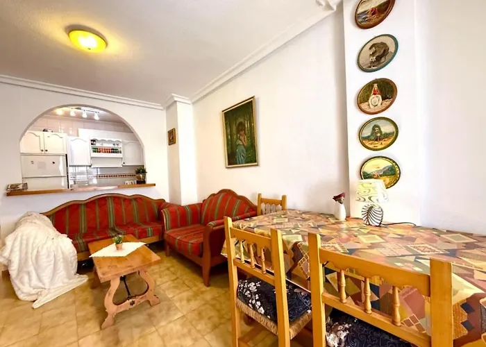 Galeon Pool Stay, 600 M To The Beach, 2 Double Beds Torrevieja, un apartamento de 50 m², goza de una ubicación frente a la playa, a tan solo 650 metros de la playa del Cura. Los huéspedes pueden beneficiarse de una piscina cubierta mientras se alojan a unos minutos a pie de l'Associazione Más Amigos.
